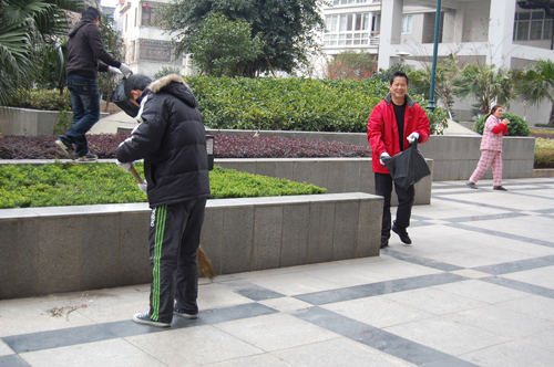 余人在支部书记兼总经理李龙跃的带领下,开展社区清洁活动。该活动得到了公司办公楼所在社区居民的好评。