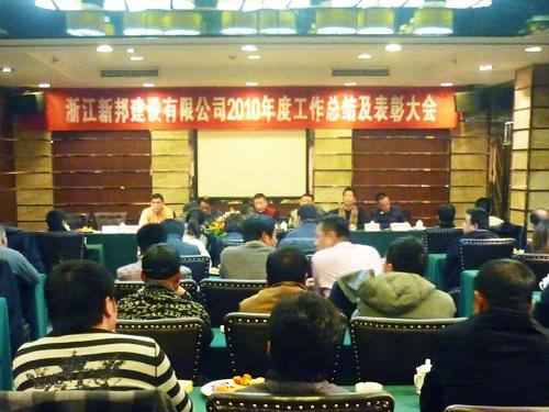 2011年1月21日,公司年终总结表彰大会。会上,李龙跃总经理代表公司董事会及经理室作年终总结报告,陈锵董事长对新的一年工作做重要发言,会上,表彰了公司2010年度的科技创新项目和优秀项目经理。鹿城区住房和建设局局长杨一敏、副局长南胜国参加会议。对于公司在2010年所取得的成绩,杨一敏局长向到会的项目经理和公司全体员工表达了主管局的祝贺,并作了重要讲话。特邀参会的鹿城地税局副局长张波向到会同志介绍了温州市地税工作特别是支持地方建筑业发展的做法,针对会议提出的问题,进行了互动对话。