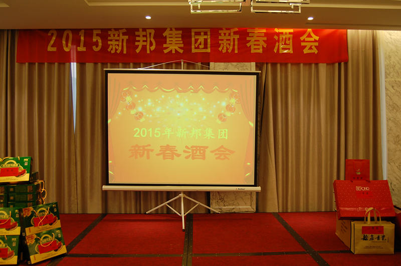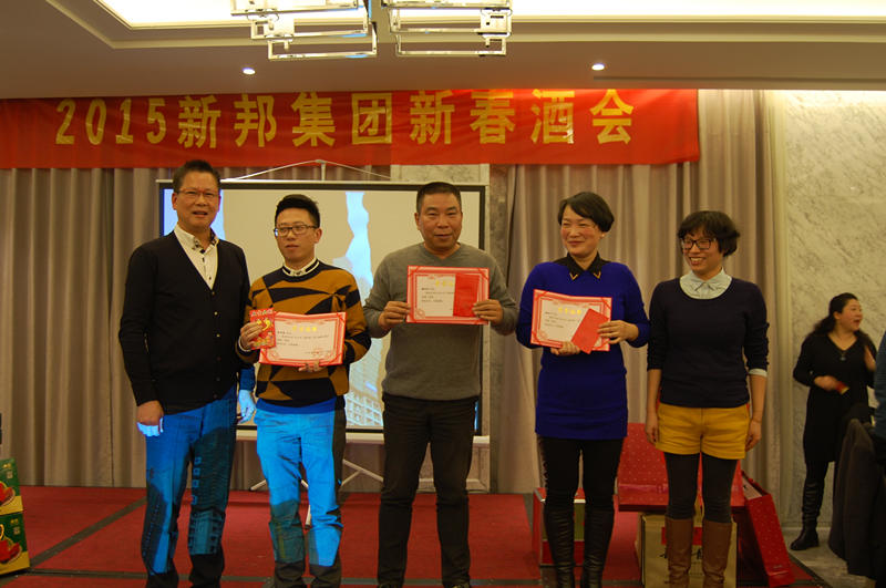 玉羊来到祝福送,紫气东升羊开泰。不知不觉,我们已步入2015年,2月6日晚,新邦集团公司年终酒会在兰立方大酒店隆重举行。大家欢聚一堂,现场气氛热情洋溢。公司为这次酒会精心准备了丰富多样的各式奖项,并给“新邦杯”职工摄影比赛获奖者颁奖。 总经理陈建新在酒会期间致辞总结了过去一年的工作,部署、展望了新一年工作和未来发展。刚刚过去的2014年,对我们公司来说,是具有意义的一年,也是喜获丰收的一年!我们公司整个2014年取得骄人业绩,产值达到30多亿,公司面对外部经济下行、市场需求依然不旺的情况,积极应对,加快转型升级的步伐,并且即将成功上市。对于2015年的目标,公司高层信心满满。全体员工也表示会以更加饱满的热情,更加务实的作风,创新进取,共同创造新的辉煌!