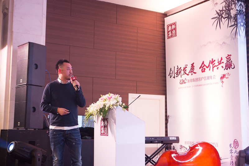 新邦集团董事长陈锵先生致辞,对本次答谢年会“创新发展、合作共赢”的主题进行了阐释,肯定了新邦集团过去取得的成就,明确了新邦集团未来的五个发展方向: