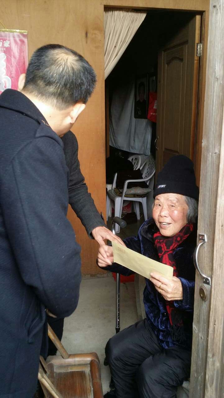 新春佳节来临之际,2月2日,市住建委主任周守权率办公室、计财处等各部门领导及新邦股份李书记、百盛集团徐总等优秀企业代表在平阳县住建局纪检组长薛成安,鳌江镇委委员、常委副镇长华怀建,镇委委员陈骧及梅溪社区书记叶长鸽等人的陪同下到平阳县凤尾山村扶贫慰问,向困难党员和群众送去扶贫资金和慰问金,送去党和政府的关怀与温暖,把新春美好的祝福送到他们中间。