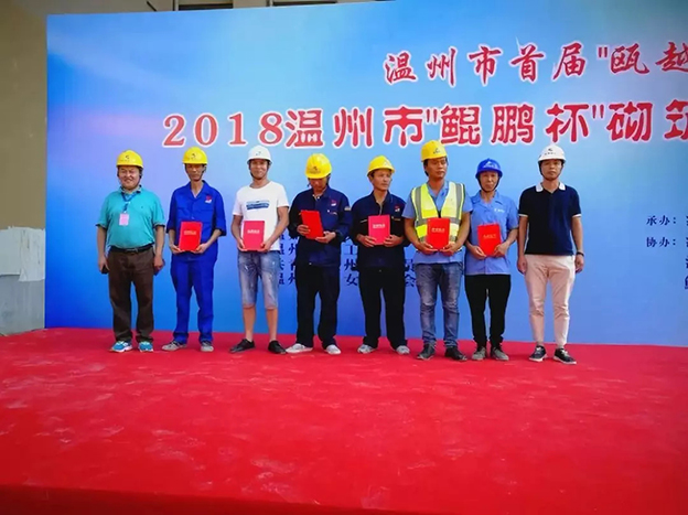 代表浙江新邦建设股份有限公司参赛的工人通过专业砌筑水平收获了在场所有专家包括其他参赛工人的一致好评,为新邦公司收获个人二等奖、三等奖二名,并取得了团体第二名的好成绩!
