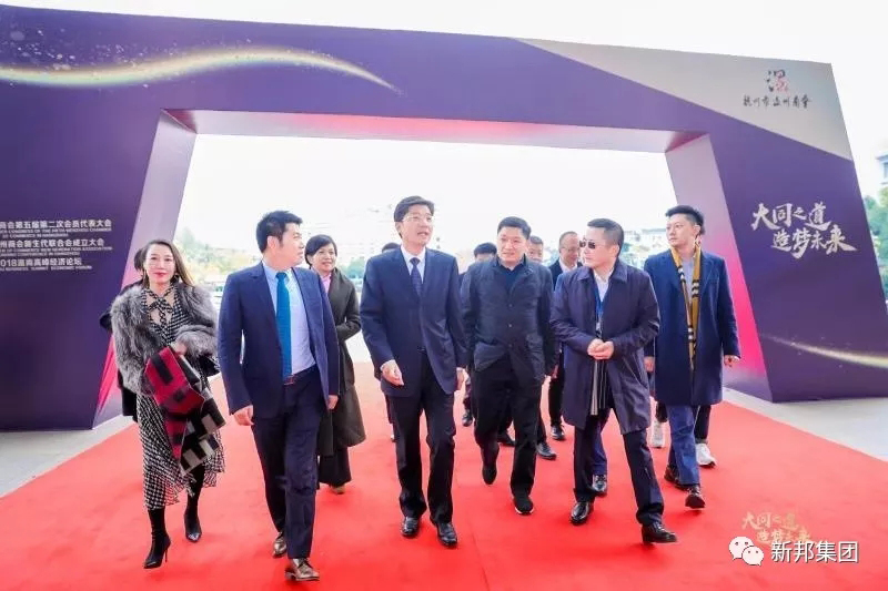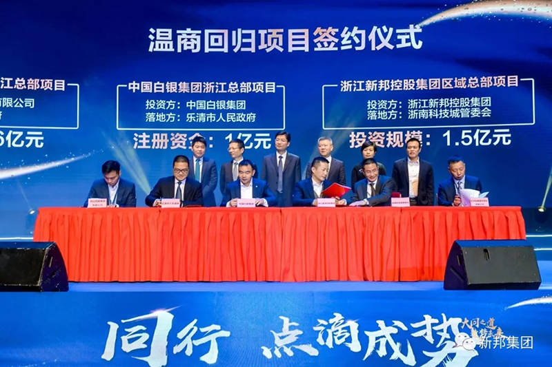 2018年12月28日,温州市市委副书记、市长姚高员,副市长汪驰,市政府秘书长彭立华等有关领导出席杭州温商回归签约仪式,新邦集团董事长陈锵和新邦集团总裁范小青出席仪式。新邦集团作为本次签约单位将在浙南科技城设立浙南总部,为家乡建设和经济发展贡献一份力量。