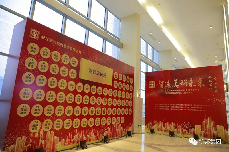 盛世佳节山河美,万象更新锦绣春。2019年1月11日,浙江新邦控股集团有限公司2019迎春年会暨求新建筑设计25周年庆典在温州隆重举办。上午的乔迁仪式在礼炮声和欢呼声中圆满结束,晚上的迎春年会上,集团和各子公司员工近千人出席。