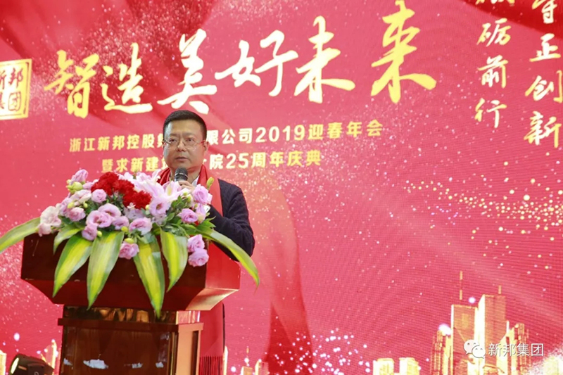 他表示,这一年里,在董事长陈锵先生和新邦集团的带领下,在各位朋友们的关心和支持下,求新大家庭的各位同事坚持我们自己的理想及信念,用我们的坚强毅力,取得了一个丰收的成果,2018年度设计产值同比翻了近200%,按照集团部署,依托新邦远大工业化建筑基地,在远大设计院为基础的背景下成立了温州首家装配式设计研究院,新创产值2000多万,并且依托集团杭州总部平台,成立了求新杭州设计院,与富力、绿城、金地、红星、金茂、中联合、省设计研究院等大型集团,确立了合作机制,搭建合作平台,正有条不紊的开展业务合作。在新的一年,通过全体同仁的共同努力下,公司一定能在集团的带领下,在各位领导、嘉宾的扶持下实现新的飞跃、新的辉煌。