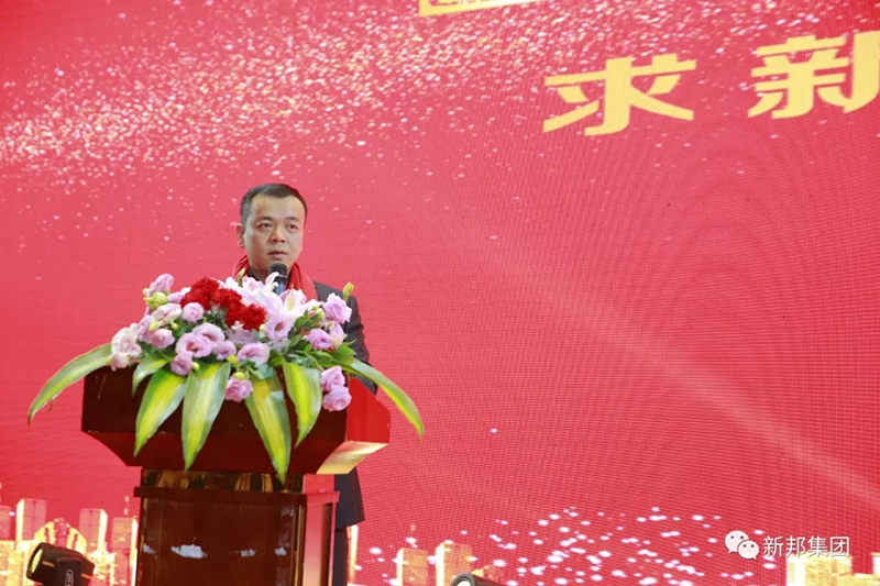 “凝心”:在这个风云变化的时代,失败和机会往往并存,成功与风险总是共担,新一年,新邦人心往一处聚,劲往一处使,希望大家把“新邦”做成金字招牌,百分呵护,千分把捏,万分上心。我相信百年新邦梦一定会实现。