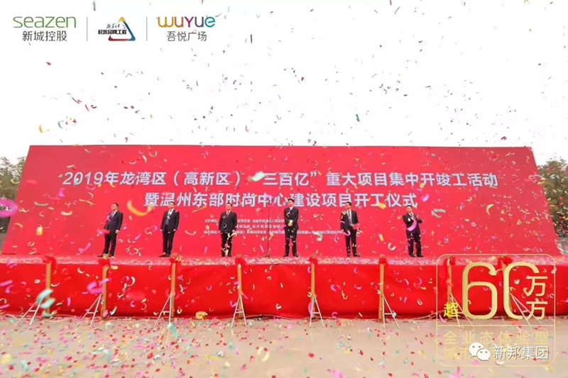 今天集中开竣工启动仪式现场的吾悦广场一期一标段项目,是由浙江新邦建设股份有限公司负责承建,总投资75.3亿元,总建筑面积约62.4万平方米,是龙湾区社会性投资项目,也是投资规模和开发体量最大的地标性城市综合体,该项目的开工建设,将为龙湾区打造温州东部“时尚之都”起到强有力的推动作用。