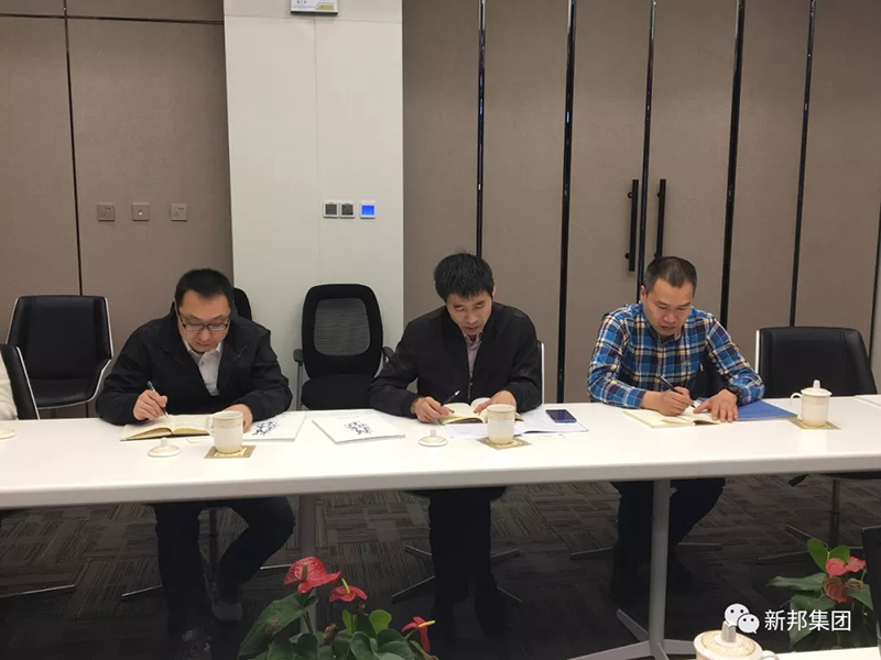 新邦建设总经理陈建新就企业基本情况、企业的创新科技,倾力于打造现代化、智能化的顶尖建筑施工企业,向各领导作了详细汇报和交流。