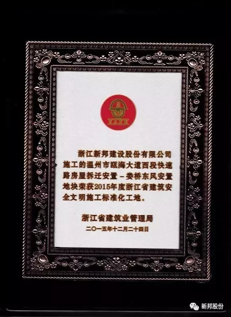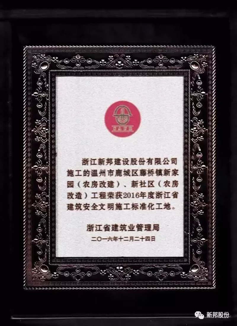 作为温州市百强企业、建筑业龙头企业、鹿城区功勋企业、区税收50强企业,新邦担负着发展的重任。秉承“以诚取信,重视质量,关注安全,精心施工,铸造品牌,服务社会 ”的理念,力争将企业建设成为一个社会品牌知名度较高,具有持续发展潜力的企业。