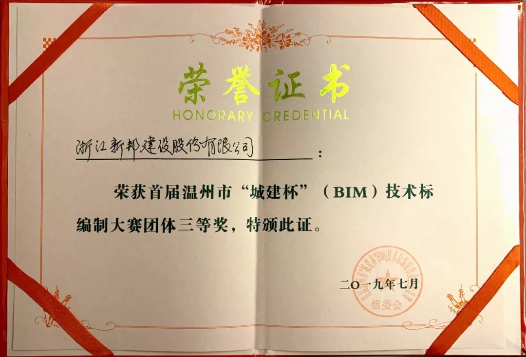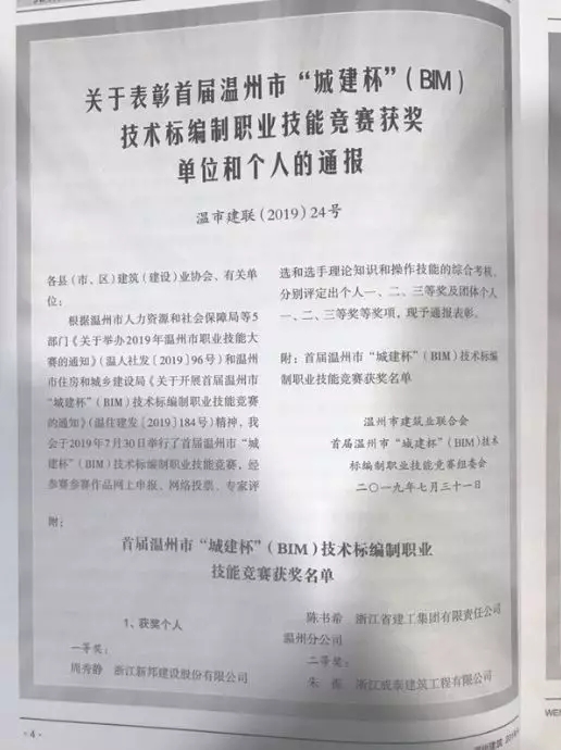 浙江新邦建设股份有限公司周立鹏获个人三等奖。