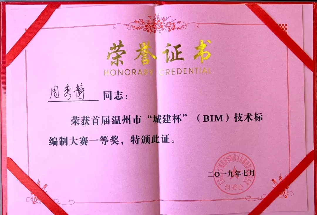 经过紧张的角逐,浙江新邦建设股份有限公司周秀静获得个人一等奖;