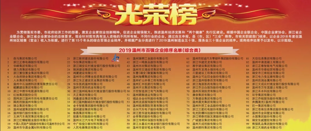 浙江新邦建设股份有限公司入选2019温州市百强企业第21名,这也是新邦建设连续多年荣获温州百强的殊荣。