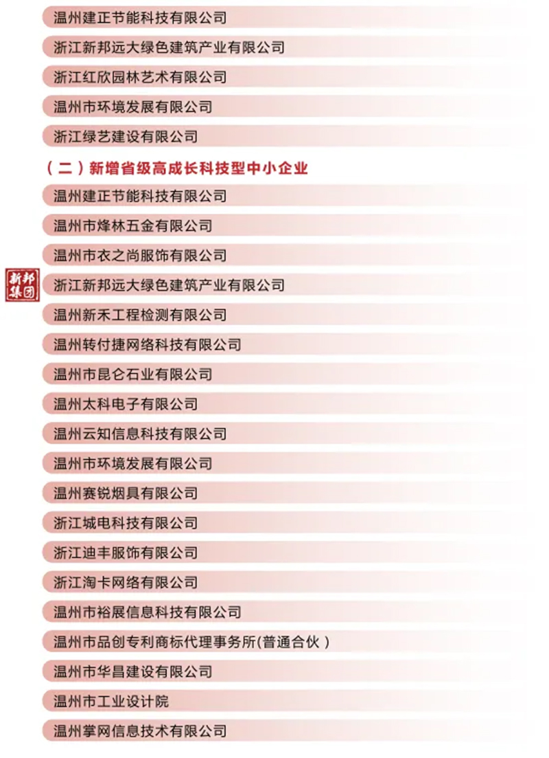 浙江新邦远大绿色建筑产业有限公司 荣获国家高新技术企业、 省级高成长科技型中小企业