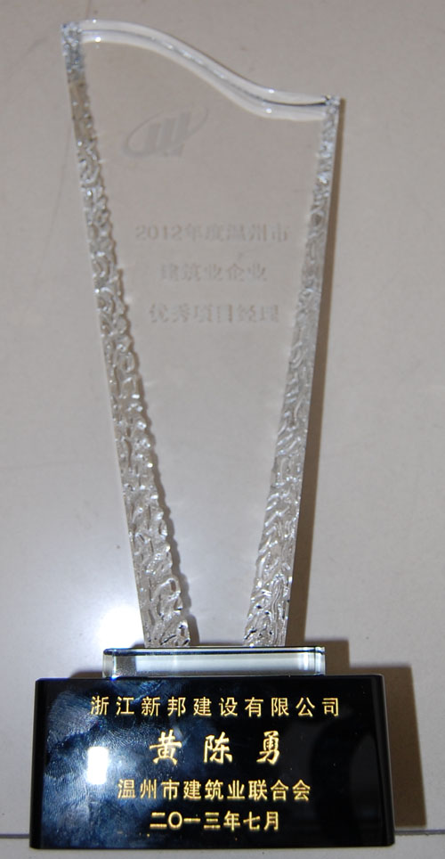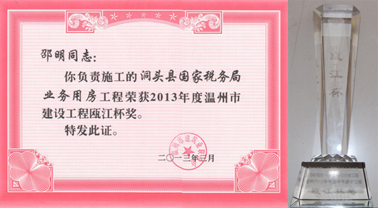联合会经评选,授予公司2012年度“温州市建筑业优秀企业”荣誉称号、授予公司董事长陈锵2012年度“温州市建筑业优秀企业家”荣誉称号、授予公司项目经理黄成勇2012年度“温州市建筑业优秀项目经理”荣誉称号。公司承建的解放南路延伸地块、洞头国税局、藤桥镇第一小学教学综合楼等三项工程荣获2013年温州市建设工程瓯江杯(优质工程)。