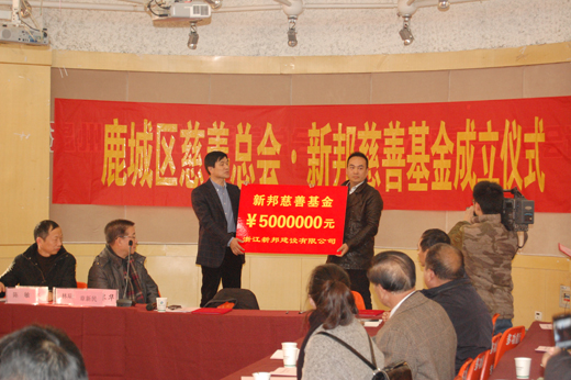 新邦建设历来倡导“扶贫济困、乐善好施”的传统美德,不忘社会责任。作为鹿城区慈善总会的理事单位,一直怀着慈善之心,以关爱生命为使命,积极热衷参与社会公益事业,坚持为社会慈善事业作出贡献。公司每年都参加市政府组织的扶贫活动,至2013年,已为资助贫困乡村、贫困学生、离退休干部联谊会等捐款累计180多万元。今年,公司更是设立了本金总额高达500万元的“新邦慈善基金”。 公司对社会的贡献得到了政府和社会的广泛认可。