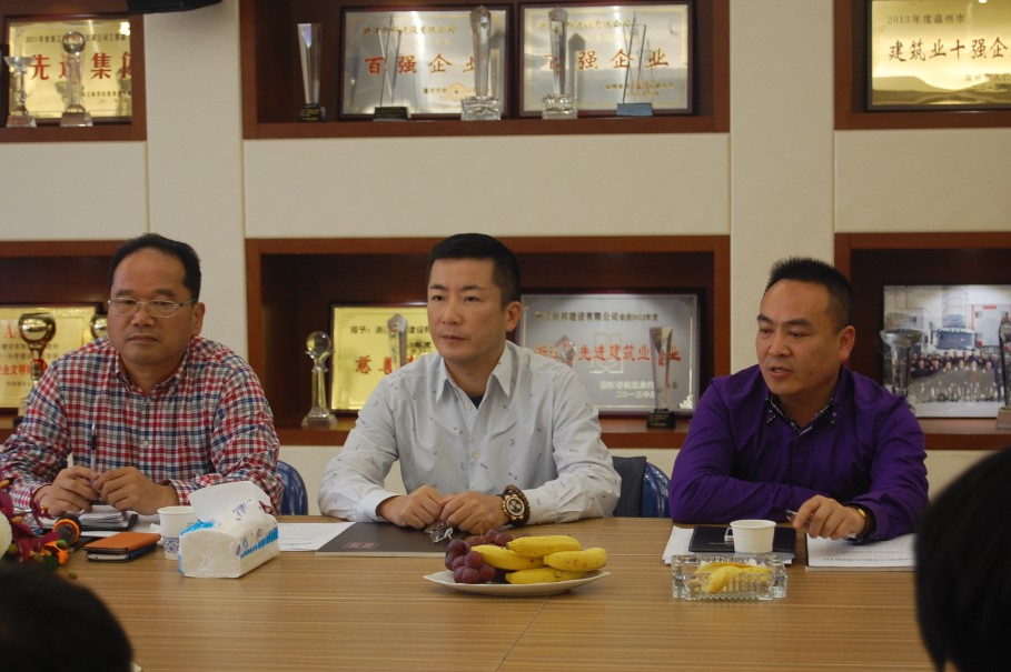 2014年4月28日,在新邦集团大楼举办了“鹿城区建筑业企业2014年第一季度经济分析会议”,此次大会由鹿城区住房和城乡建设局主办,浙江新邦建设有限公司承办,鹿城区建筑业各领头企业参会。区住建局吴柏松副局长、徐建斌副局长现场与企业交流想法,探寻温州建筑业企业发展方向。