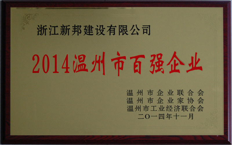 大会听取了“三会”2014年度工作总结,并宣读了“关于表彰2014温州市百强企业的决定”。新邦建设以第32顺位成绩再次位列百强名单,总经理陈建新代表公司上台领奖。