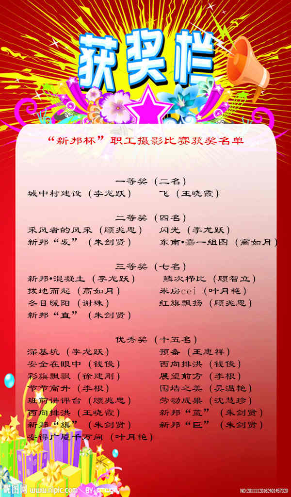 2014年“新邦杯”职工摄影比赛经过前期策划、准备、采风、投稿、展出等阶段,在2015年1月20日这一天特别邀请温州市摄影家协会专家组前来对本次的作品进行评选。经过1个多小时的认真分析,专家组成员对所有参赛作品进行层层选拔,并分别讲述了每张照片的优点及不足之处,最终评选出本次比赛的获奖情况:一等奖二名、二等奖四名、三等奖七名、优秀奖十五名。