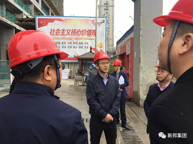 新邦建设总经理陈建新现场接待苗伟伦副市长一行,并对新邦建设项目“无欠薪”示范工地创建情况,以及新邦企业有关农民工工资分帐管理,实名制发放,智慧住建及大数据管理作了一一汇报。